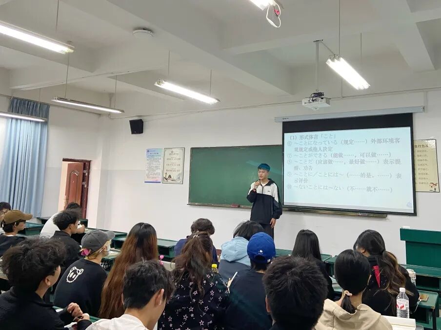 在准备命题演讲「私が伝えたい中国の若者文化――今と未来」(继往开来守正创新——讲好中国青年的故事)时,苏子明同学选择了“躺平”“内卷”等具有代表性的青年社会文化现象,深入查阅资料,反复修改演讲稿;在即兴演讲训练中,指导教师设计了多种主题进行模拟,培养他的临场应变能力。赛前组织集中训练,利用课余时间在教室、会议室反复打磨。