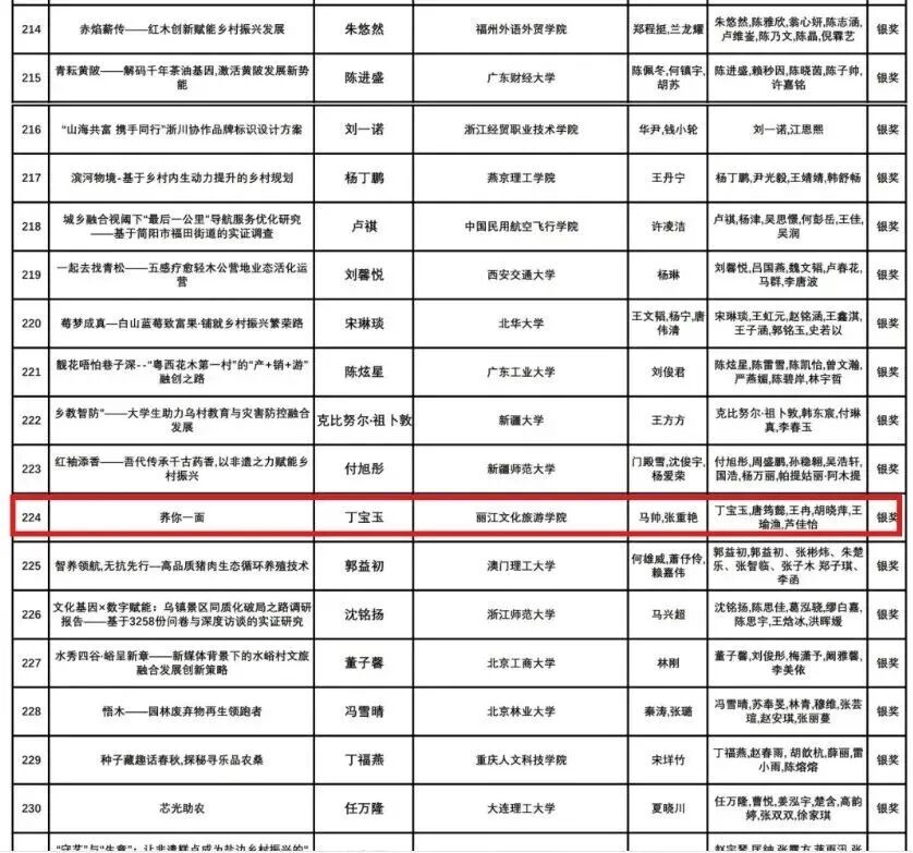 我校获奖项目紧扣乡村振兴战略需求,深度融合丽江本土乡村资源特色与学校学科优势。自备战以来,团队始终秉持“扎根乡土、精准赋能”的理念,多次深入丽江周边乡村开展实地调研,走遍田间地头、走访村民农户,扎实收集一手资料。方案设计阶段,团队成员分工协作、反复打磨,将课堂所学专业知识与乡村实际需求紧密结合——既融入数字技术、文创设计等前沿元素,凸显方案的创新性与前瞻性;又充分兼顾可行性与落地性,确保方案契合乡村风貌、文化特色与生态发展理念。答辩环节中,代表队成员严格遵循大赛要求,全面展现了项目的核心价值与实践成果,赢得评审专家认可。